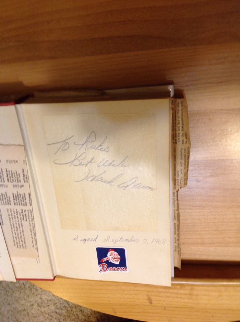 When I was a kid (about 12) I wrote a short essay: “THE GREATEST DAY IN MY LIFE” It was about my friendship with Hank Aaron from afar. He knew me, in a way, I always had the same banner out there “NAIL ‘EM DOWN Hammerin’ Hank.” He always waved at us when he went out to right field.