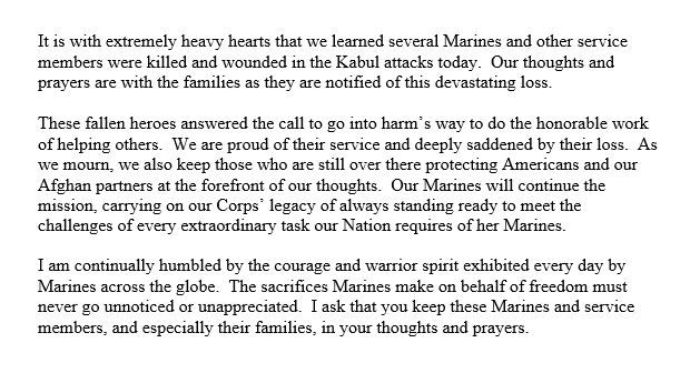 Right now one of the dirtiest and most dangerous jobs is security at Kabul Air Port. There are US Marines there, US Airborne, British, Turkish and Australian forces. 97% are probably men though in the support sevices, today on board ships and in rear echelons there are a smattering of young brave women too. Sometimes they too are in harm’s way. I know because a Hispanic woman Marine (MP) was killed in Iraq. I have lived and worked in Bakesfield (mostly rural Kern County) for over 30 years. I have personally known hundreds of young people (95% male) go into the military. Many came to see me after serving in Iraq or Afghanistan. Many were decorated. Some were critically wounded. Some whom I knew by name and had long conversations with made the supreme sacrifice.