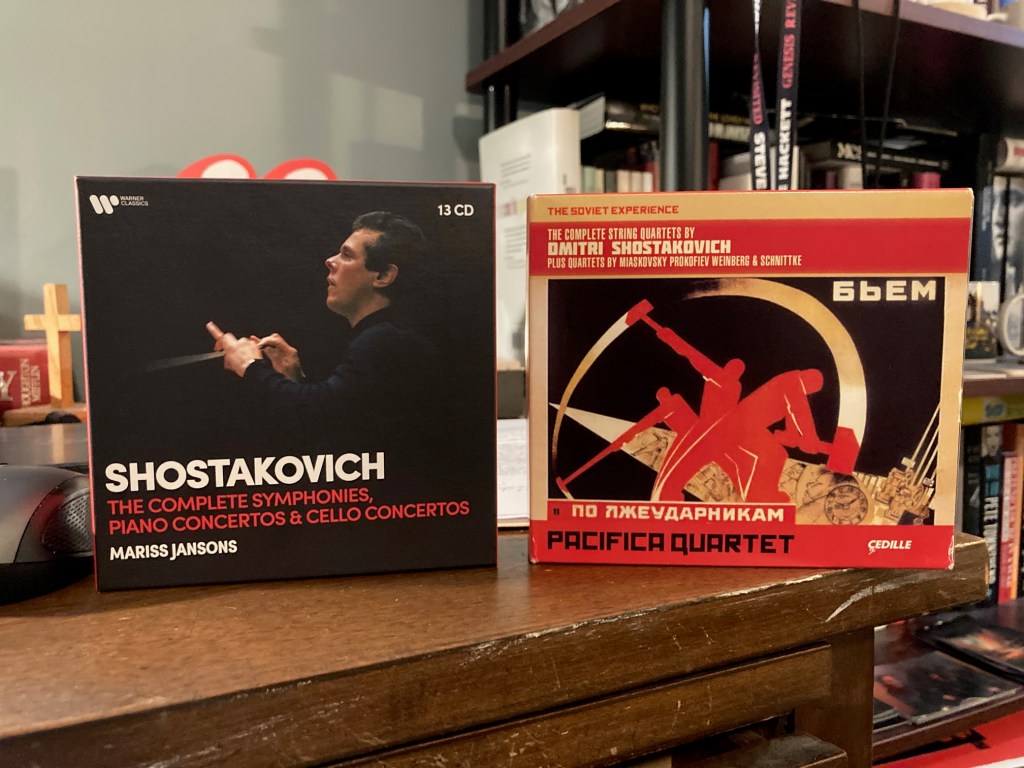 I spent a good chunk of this year digging into the music of Dmitri Shostakovich (2025 was the 50th anniversary of his death). Living in Soviet Russia under Stalin’s iron regime, Shostakovich’s modernistic compositions faced unending attack from jealous rivals and government bureaucrats; public dissent would have been futile, resulting in imprisonment or death for himself and his loved ones. So his 15 symphonies (conducted by Latvian maestro Mariss Jansons in a splendid bargain reissue) walk a thin line between deadpan conformity laced with mocking undertones (#2 “The Fifth of May”, #11 “The Year 1905” and even #5, his most popular work) and striking outbursts of grief in the wake of World War II’s human costs (#7 “Leningrad”, #13 “Babi Yar”). Meanwhile, Shostakovich’s 15 string quartets, composed “for the desk drawer”, were where he let himself go, taking his tragic/satiric outlook to agonized, bleak extremes. In The Soviet Experience, an engrossing bargain box on Chicago’s Cedille label, The Pacifica Quartet (currently resident at Indiana University) provide forceful, rhapsodic performances of Shostakovich’s early quartets #1-4, the expressive, moving #5-8 and#9-12, and the ghostly, late #13-15, plus selected, comparable quartets by Russian contemporaries. If Shostakovich’s music sounds intriguing to you, either of these sets would be excellent ways to gain your footing for further exploration.